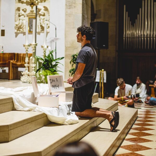 Sono arrivato e viene un ragazzo che si presenta e mi abbraccia, perché? è solo molto affettuoso? No. Ha visto in me un fratello, ma in che modo? In questi giorni ho ascoltato storie incredibili, da brividi, che mi hanno bagnato il viso e infiammato il cuore, storie che testimoniano che Dio, quando lo lasci entrare, ti stravolge la vita. Ho conosciuto persone fragili, col bisogno di essere amate, e ho scoperto le mie fragilità anche io. Con queste persone ho pianto e ho pregato. La preghiera unisce, per davvero. In questo raduno eravamo in 170, da tutta tutta Italia, e in pochi si conoscevano. E durante questo incontro ci sono state persone, che senza dirmi nulla, solo guardando il loro modo di vivere, mi hanno fatto suonare una campanellina (i santi non passano inosservati) e mi hanno mostrato come vivere da Dio, come amare, come essere fratelli. In queste persone, nelle testimonianze degli altri, nella preghiera, nelle relazioni con gli altri, ho incontrato Dio, e infatti lui si trova proprio in questi posti. Ora voglio solo testimoniare e testimonio che Dio ama ognuno di noi, ha un sogno per ognuno di noi, desidera per noi la felicità e per questo bussa alle porte del nostro cuore, ci manda dei doni, gli amici, perché vuole entrare, attraverso di essi, e stravolgerci la vita. Bisogna allora ascoltare, col cuore, e riconoscere i momenti in cui bussa e fidarsi di lui, lasciarci guidare da lui. Non è facile, è un salto nel vuoto…che ti riempirà. Quello che Gesù ci insegna, è che siamo fragili, e abbiamo bisogno di amici, con cui condividere le ferite profonde del cuore e guarirle insieme, e per guarirle bisogna amarsi veramente, come fratelli. E noi siamo fratelli, perché siamo figli dello stesso padre, ma dobbiamo riconoscerci tali. Siamo fratelli perché siamo tutti segnati da quella stessa ferita, e desideriamo tutti essere felici. E allora amiamoci, affidiamo agli altri la nostra ferita e prendiamoci cura della loro.